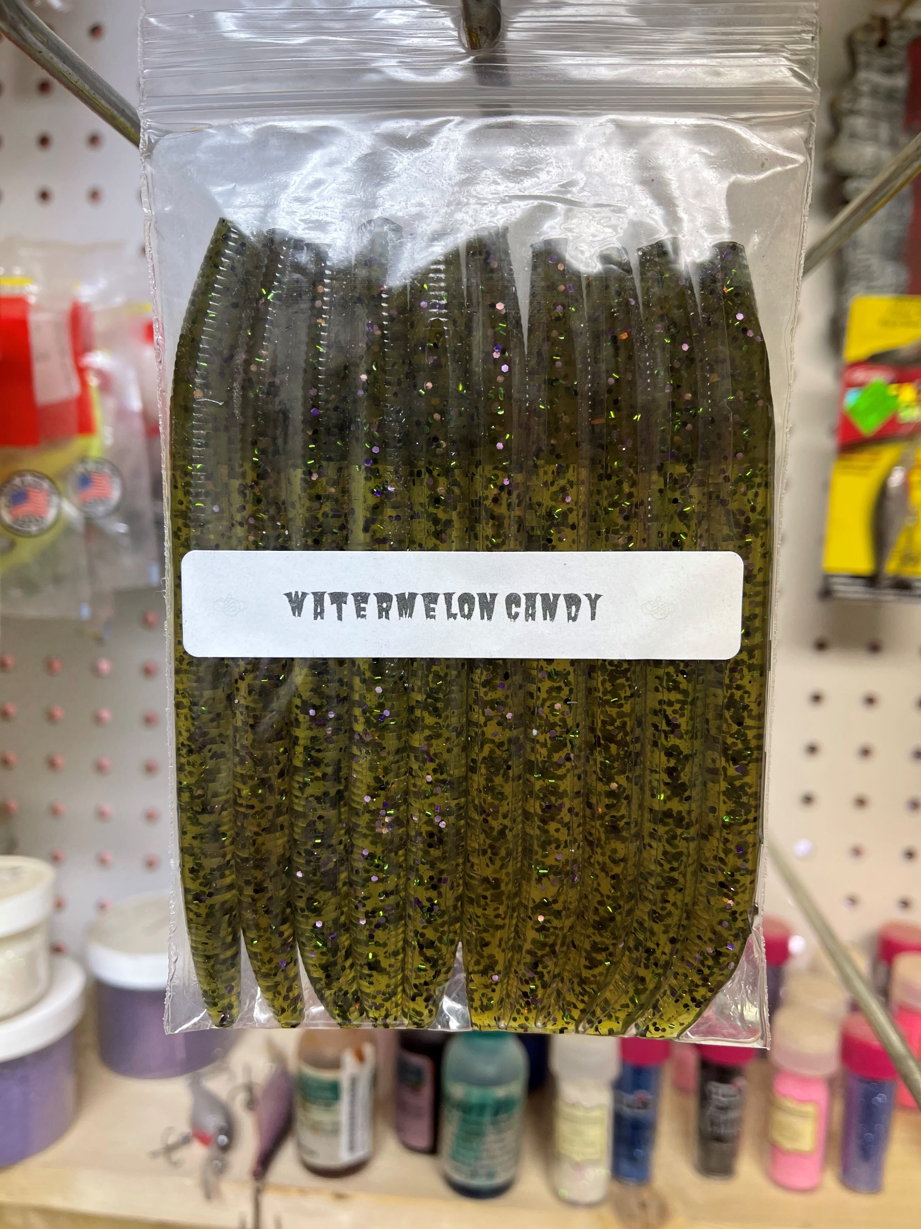 (10 pack) 5" Yamamoto style senko worm... The oldest trick in the book...Salted and flavored with heavy metal's rockin juice with worm oil... The color is "Watermelon Green Candy"